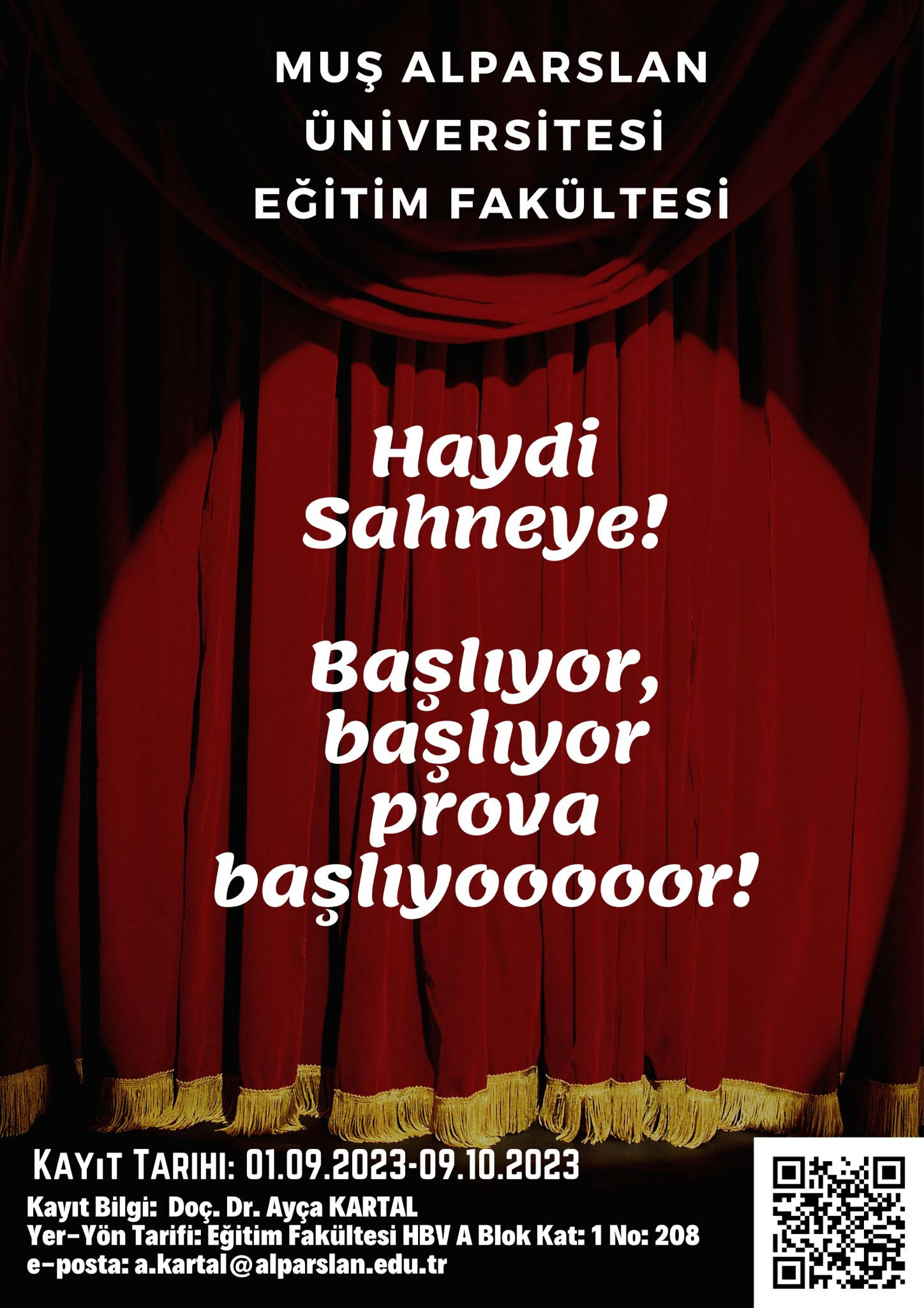 Muş Alparslan Üniversitesi Eğitim Fakültesi 2023-2024 Tiyatro Eğitimi ve Oyun Çalışma Kayıt Başvuruları Başladı.