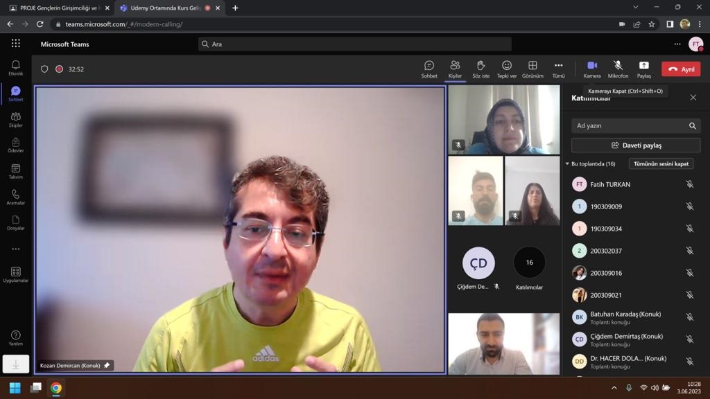 Doğu Anadolu Kalkınma Ajansı tarafından 2022 teknik destek kapsamında desteklenen “Udemy Ortamında Kurs Geliştirilmesi Eğitimi” isimli proje Eğitim Fakültesi öğretim üyelerinden Doç. Dr. Hacer Dolanbay’ın yürütücülüğünde 3-9 Haziran 2023 tarihlerinde çevrimiçi olarak gerçekleştirilmiştir. Anılan Proje kapsamında mezun ve devam eden toplam 20 öğretmen adayı eğitim almıştır.