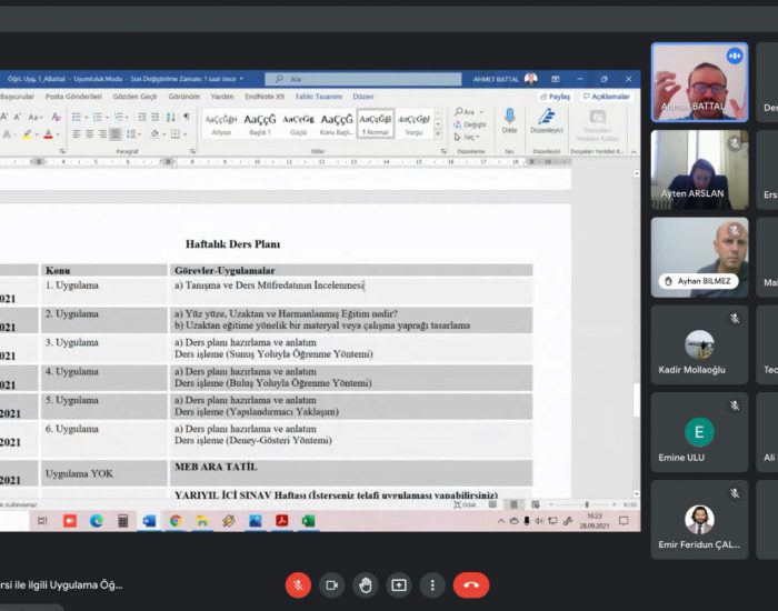 2021-2022 Eğitim Öğretim yılı güz dönemi Öğretmenlik Uygulaması ve Okul Deneyimi Dersleri ile ilgili Eğitim Fakültesi ve İl Milli Eğitim Müdürlüğü toplantısı fakülte koordinatörümüz Dr. Öğr. Üyesi Ahmet BATTAL başkanlığında gerçekleştirildi. Toplantıya İl Milli Eğitim Müdürlüğü koordinatörü ile süreçte görev yapacak öğretmenler de katıldı. İlgili derslerin planlaması ve takibi ile ilgili paydaşların görev ve sorumlulukları belirlenerek, iyi dileklerle toplantı sona erdirildi.